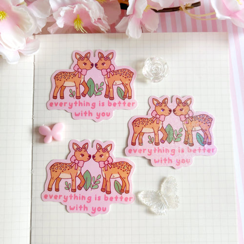 Better with you Fawn die cut vinyl holographic sticker