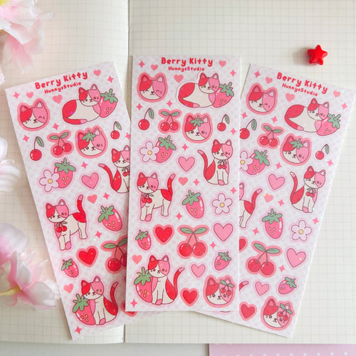 Berry kitty vinyl holographic sticker sheet